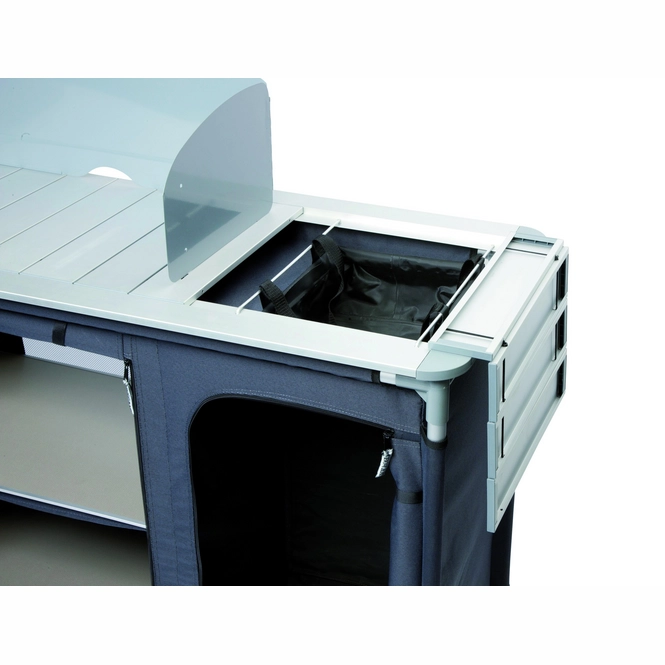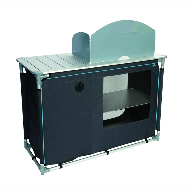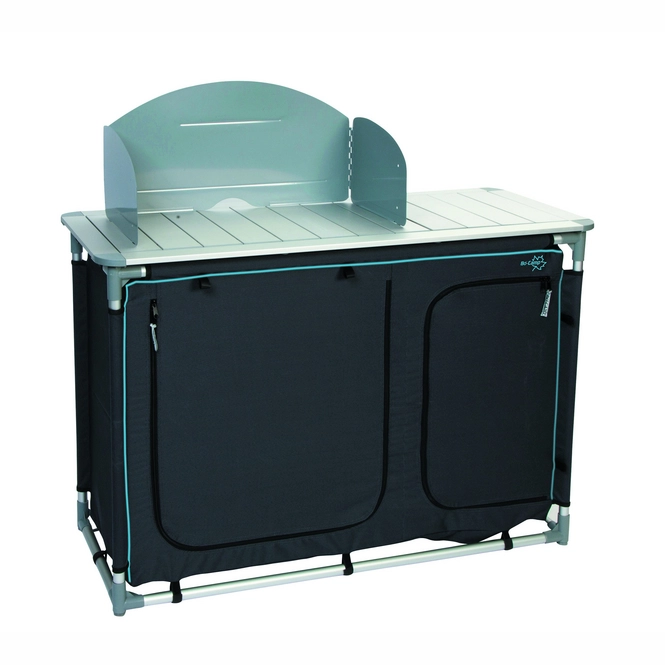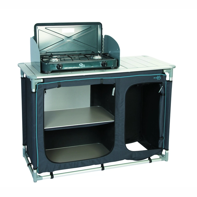 Diese sehr luxuriöse Kochinsel hat eine Spüle und stammt von der Marke Bo-Camp. Die Maße betragen 117 x 50 x 80 Zentimeter und die Kochinsel hat eine extra stabile 600-Denier-Polyesterabdeckung mit 2 praktischen Ablagen. Zusätzlich befindet sich auf der rechten Seite eine Öffnung mit einer Gasflasche. Die Oberseite dieser Kochinsel ist wasserdicht, hitzebeständig und mit einem Windschutz ausgestattet. Es ist für einen 4-Flammen-Gasherd geeignet. Die separat verstellbaren Beine sorgen dafür, dass die Kochinsel auf jedem Untergrund stabil steht. Kommt in einer Tragetasche. Gefaltet (L x B x H): 121 x 41 x 41 Zentimeter.